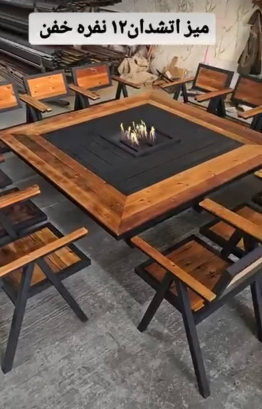 میز آتشدان ۱۲ نفره – چوب ضد آب ترموود با رنگ استاتیک و ضمانت