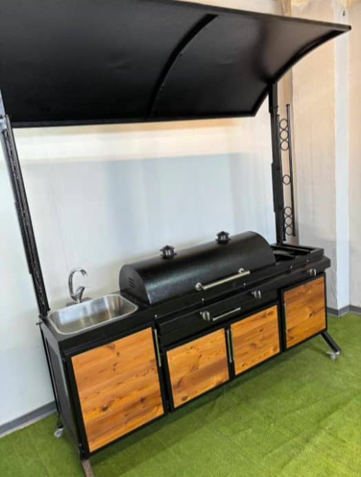 باربیکیو گازی و ذِغالی ۱متری ،گریل دار ،فن دار ،پلو پز ، سینک استیل و آبچکون